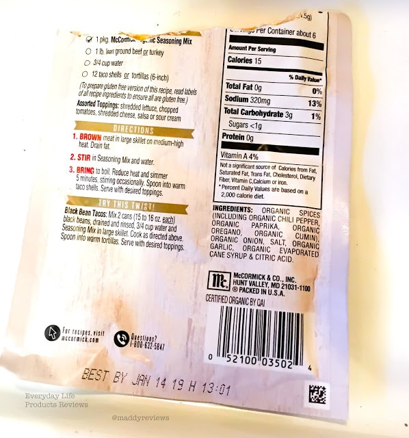 We had used our McCormick Organic Taco Seasoning Mix in seasoning our typical ground turkey dinner. You can use it for your taco Tuesdays meat or vegan dinners.
