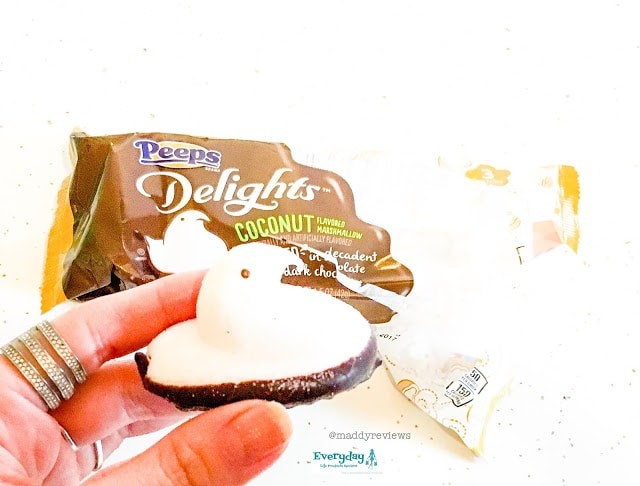 The peeps had a taste that was a light coconut taste and not overpowering at all. The dipped dark chocolate taste was rich and smooth and it melted in your mouth with no heaviness.