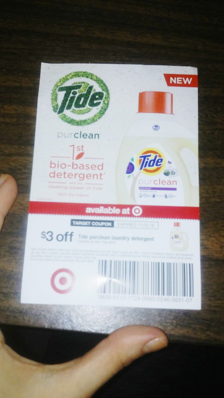 I received a 1 free load sample of Tide PurClean in the heavenly light mild sweet floral scent of Honey Lavender. I had also been given a 3 dollar coupon to purchase.