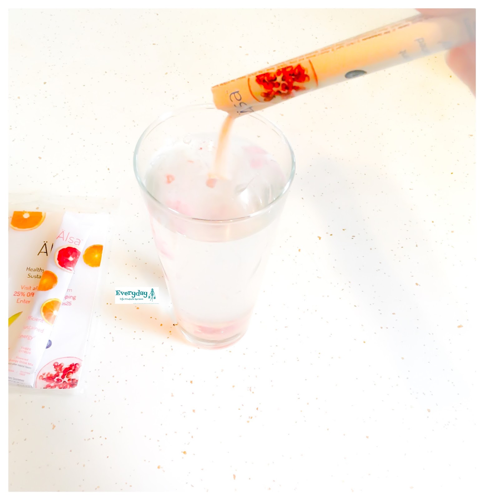 This is an image, I had taken with my camera below is of how the Three Citrus vitamin mix on the go from Alsa looks like being poured into the water.
